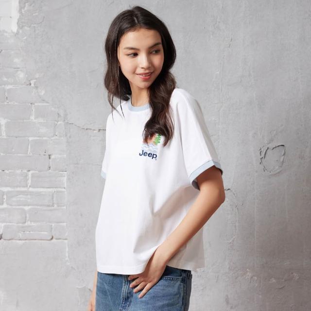 JEEP 女裝 橡果圖騰純棉短袖T恤(橘紅色)