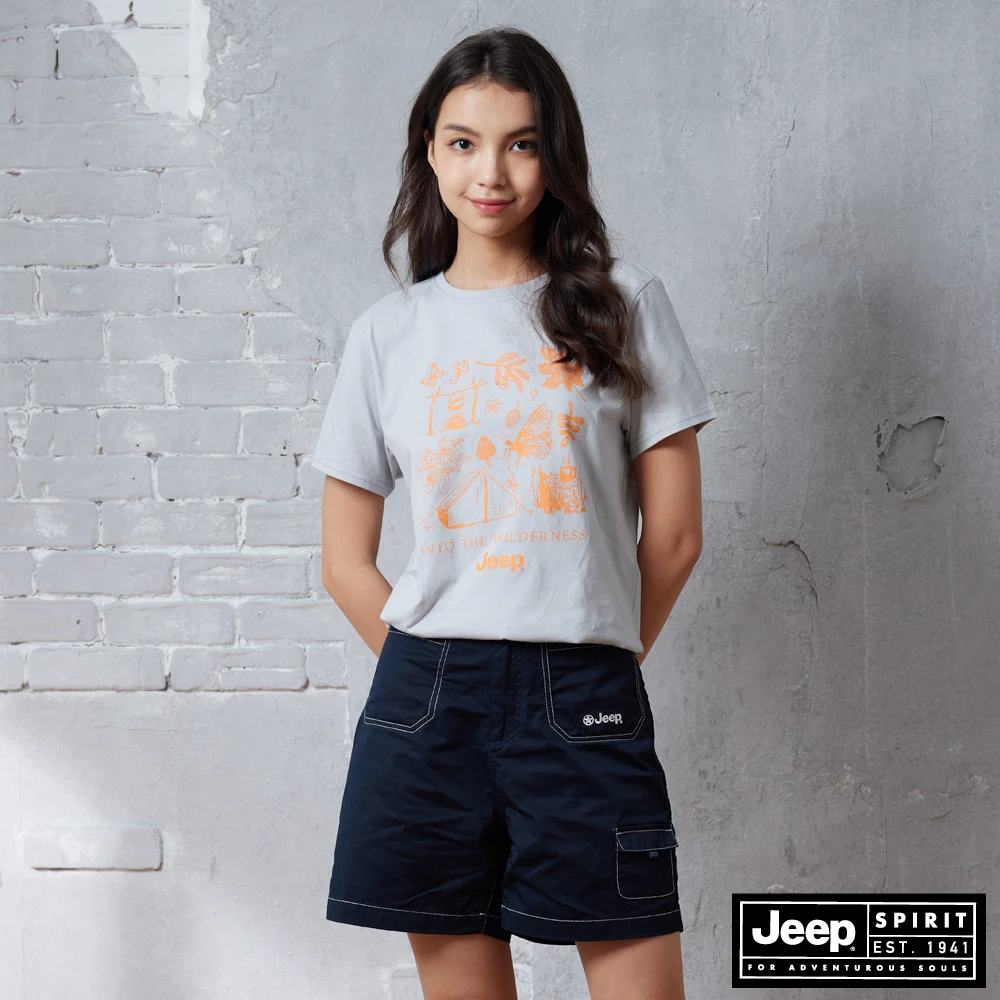 JEEP 女裝 森林風格純棉短袖T恤(灰色)