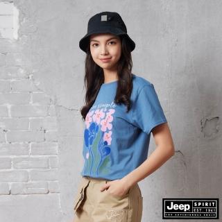 JEEP 女裝 花卉塗鴉純棉短袖T恤(藍色)