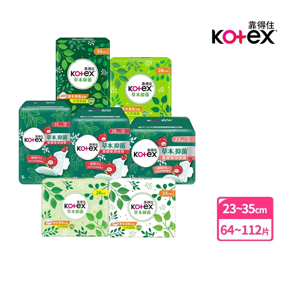 Kotex靠得住 草本抑菌超薄衛生棉日用23cm/26cm/28cm/35cm 8包 及草本抑菌EX加強版23cm/28cm 7包