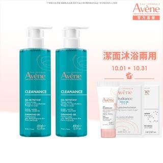 Avene 雅漾官方直營 控油舒緩潔膚凝膠400ml 2入組(洗面乳/沐浴乳)