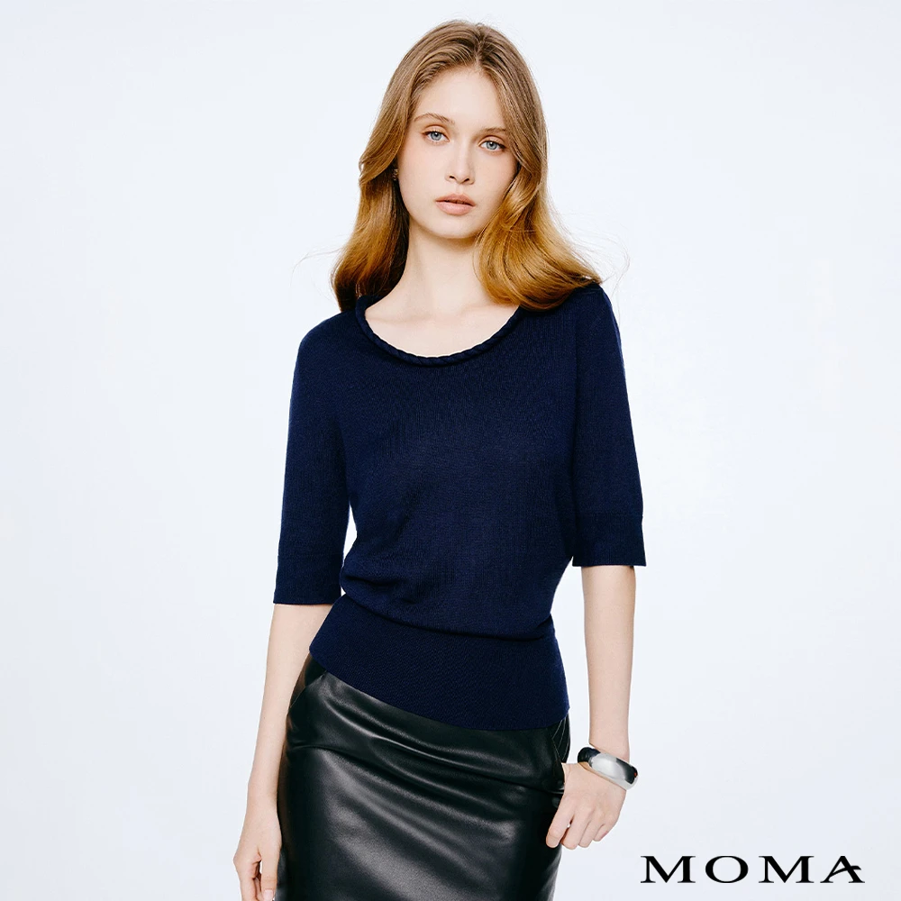 MOMA 麻花捲邊羊毛混紡針織七分袖上衣(兩色)