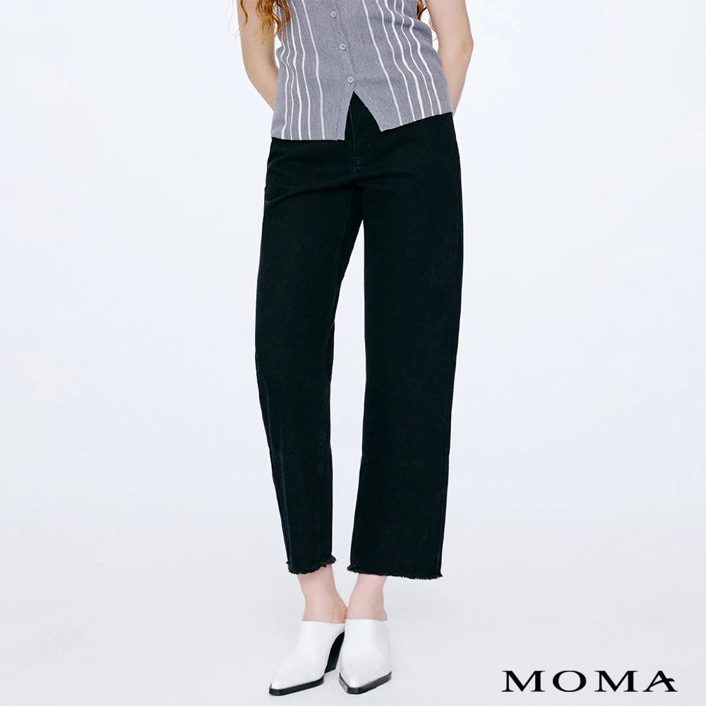 MOMA M+ 復古金釦棉質牛仔錐形褲(黑色)