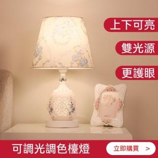 易利談 歐式裝飾床頭燈 臥室檯燈(調光開關/三擋亮度 上下燈可分控)