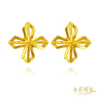 金喜飛來 黃金耳環立體十字花一對(0.15錢±0.02)