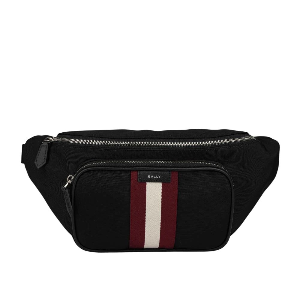 預購 BALLY Code 經典紅白條紋尼龍腰包(黑色)