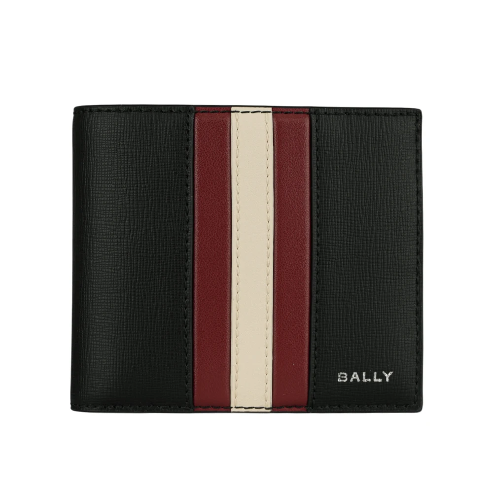 預購 BALLY Mythos 紅白條紋再生牛皮對開8卡短夾(黑色)