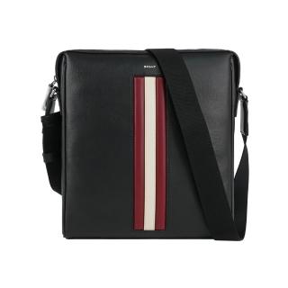 預購 BALLY Mythos 紅白條紋再生牛皮拉鍊斜背包(黑色)