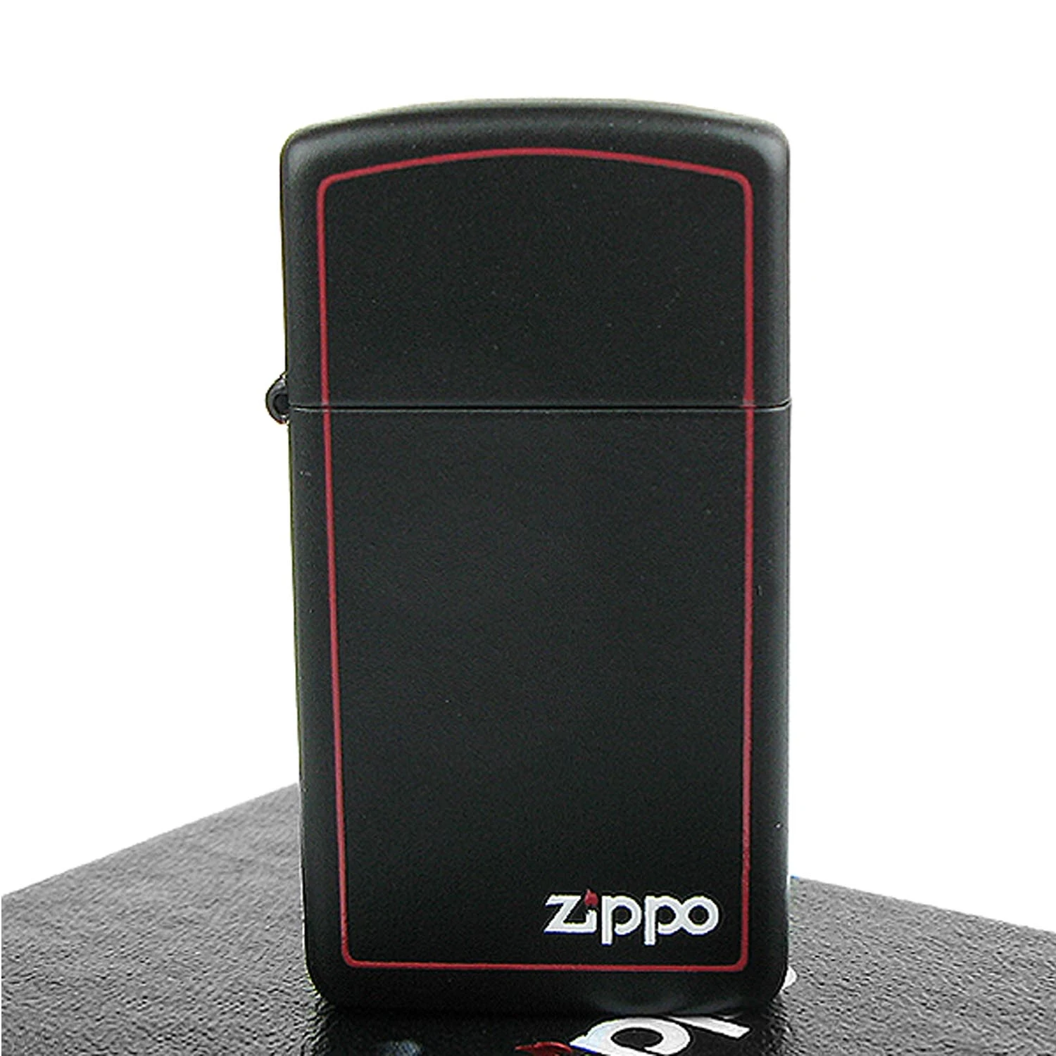 ZIPPO 美系-LOGO字樣打火機-紅邊黑色烤漆(窄版)
