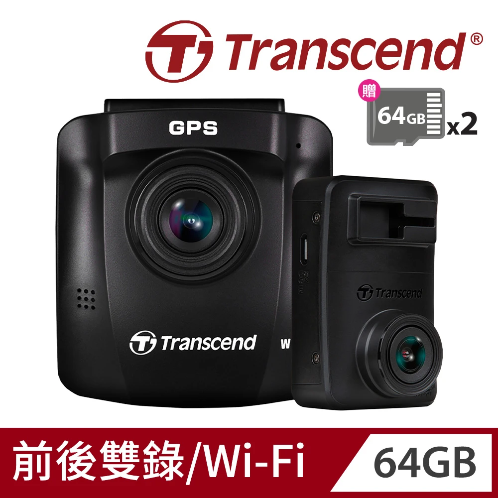 Transcend 創見 DrivePro 620高感光+WiFi前後雙鏡行車記錄器 行車紀錄器-附64GB記憶卡x2(TS-DP620A-64G)