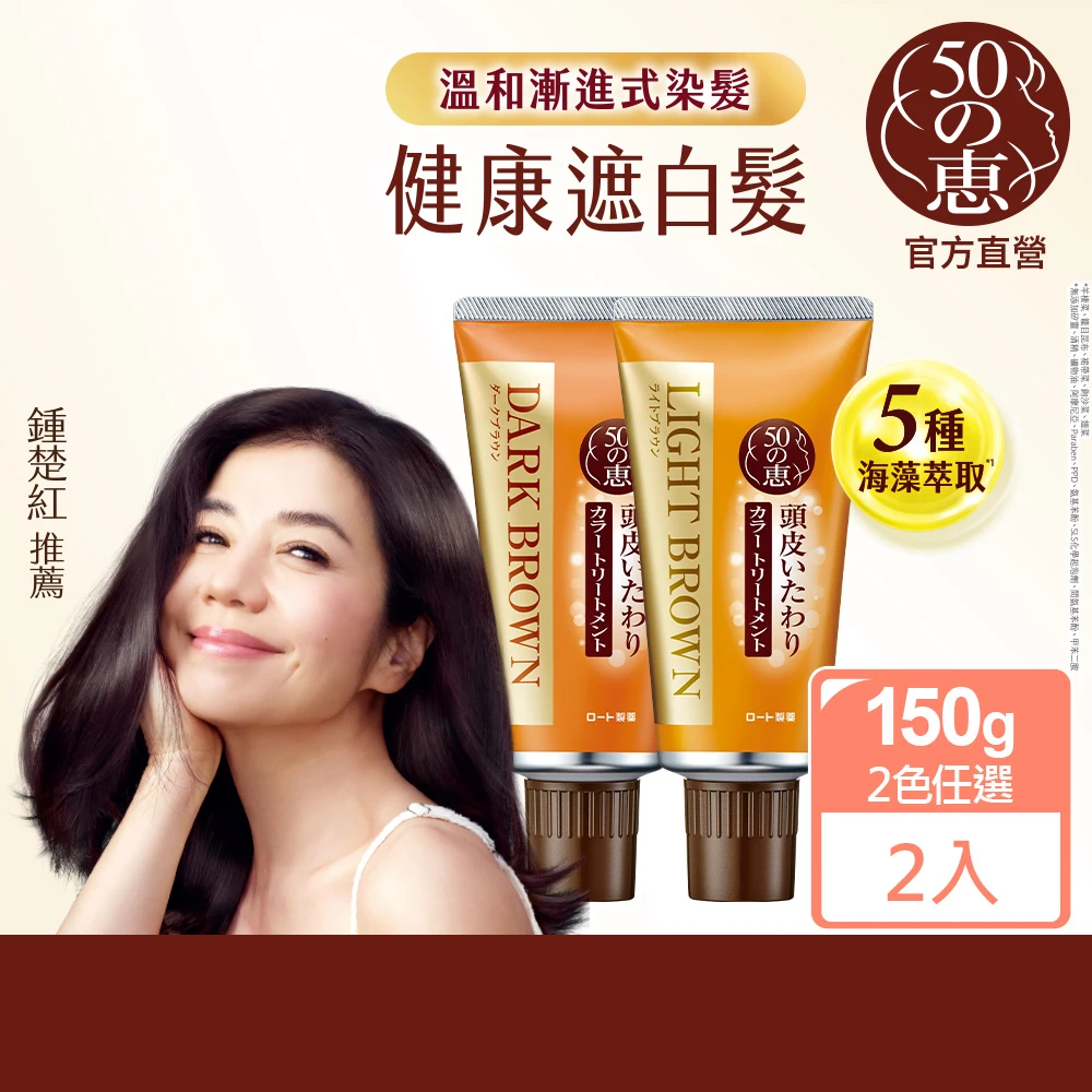 50 惠 海藻染髮護髮霜 2入 兩色任選 深棕 淺棕(日本樂敦製藥 漸進式白髮染 健康半永久染)