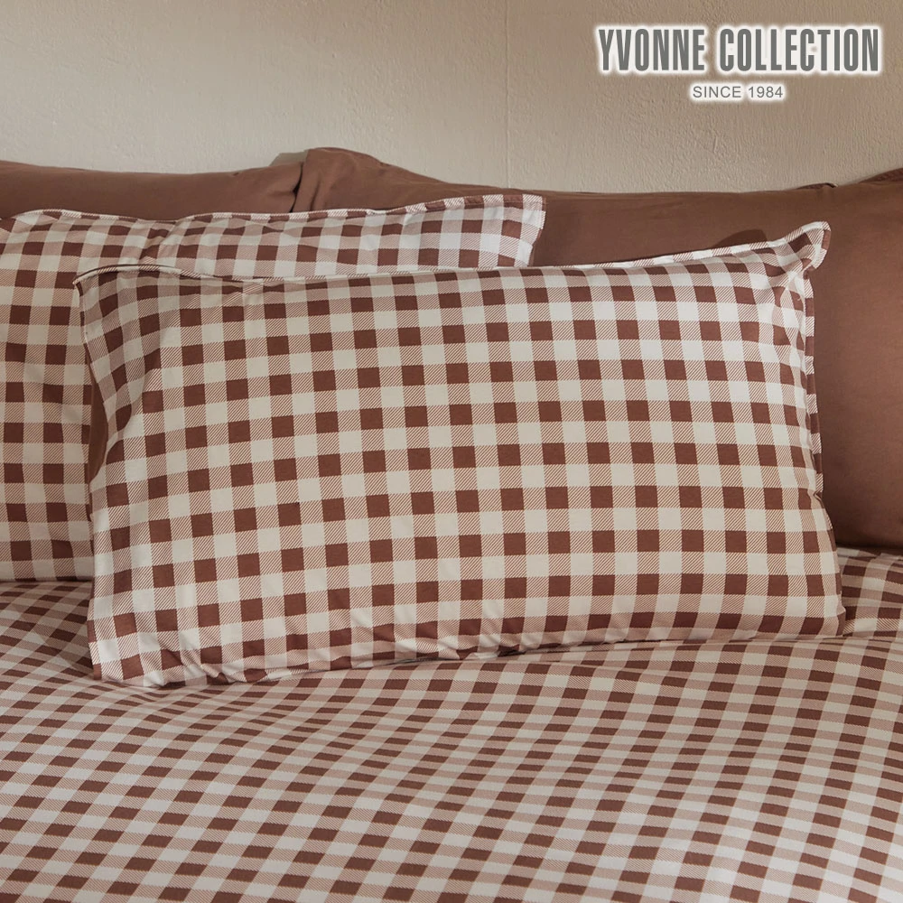 YVONNE 以旺傢飾 100%美國棉印花枕套-格紋 可可棕(1入 純棉)