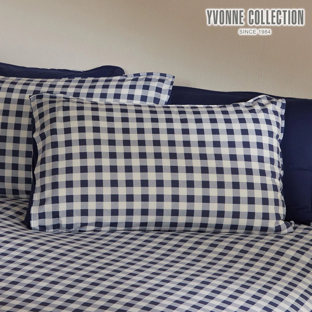 YVONNE 以旺傢飾 100%美國棉印花枕套-格紋 星海藍(1入 純棉)
