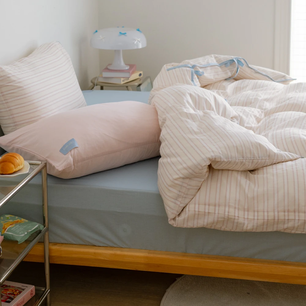 翔仔居家 100%純棉 華爾紗 鋪棉被套床包組4件組-海鹽x莓果芝士(雙人/純棉床包/雙人床包/床包被套)