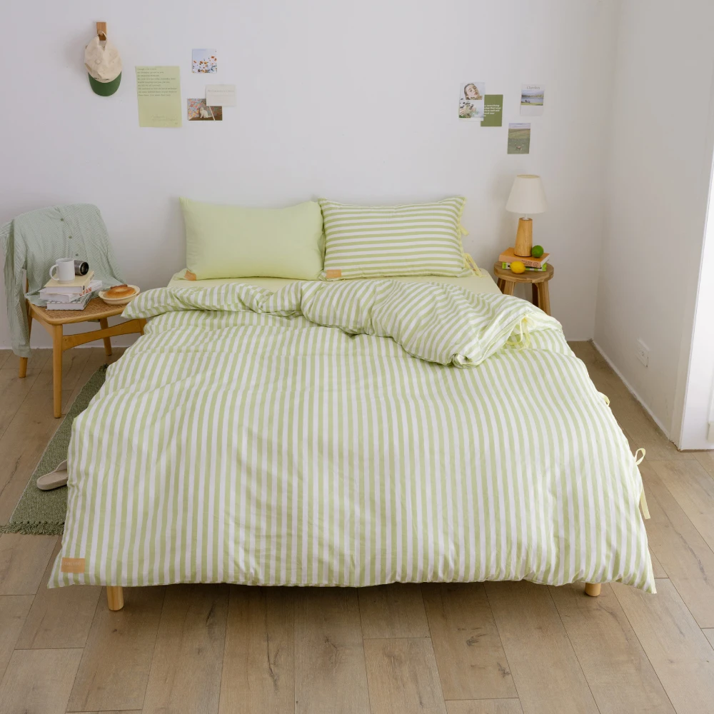 翔仔居家 100%純棉 華爾紗 鋪棉被套床包組4件組-檸檬x開心果優格(特大/純棉床包/特大床包/床包被套)