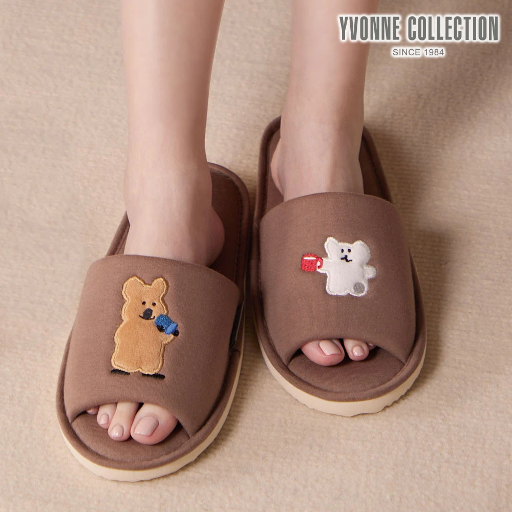 YVONNE 以旺傢飾 DINOTAENG 咖啡開口室內拖鞋-可可棕