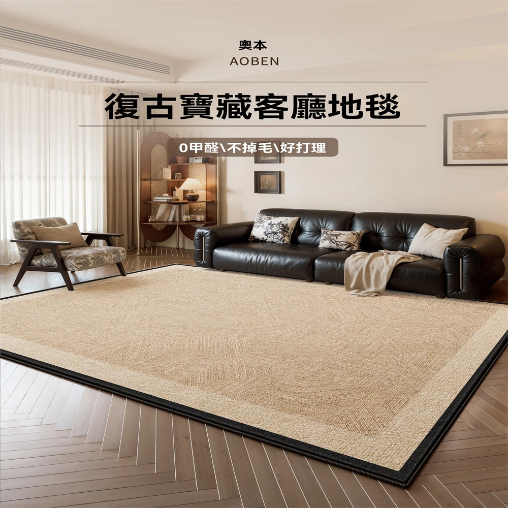 超微米 中古風地毯 客廳沙發茶几地毯 復古臥室床邊毯(免洗可擦防水防污地墊160×230cm)