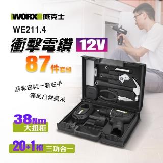 WORX 威克士 12V鋰電無刷衝擊電鑽 87件精選套裝組(WE211.4)