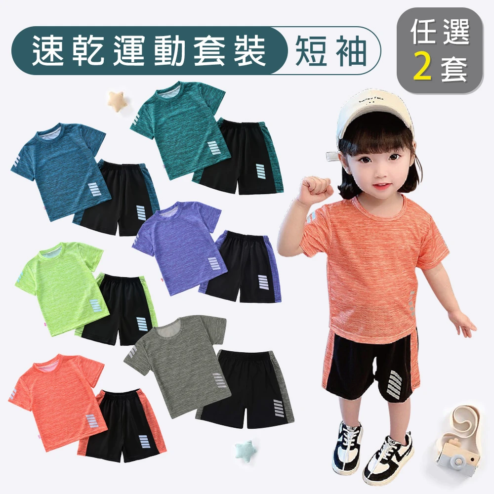 我家寶貝 童裝 買一送一90-160cm 兒童速乾運動排汗衫短袖套裝 春夏透氣網眼 男女童運動衣褲