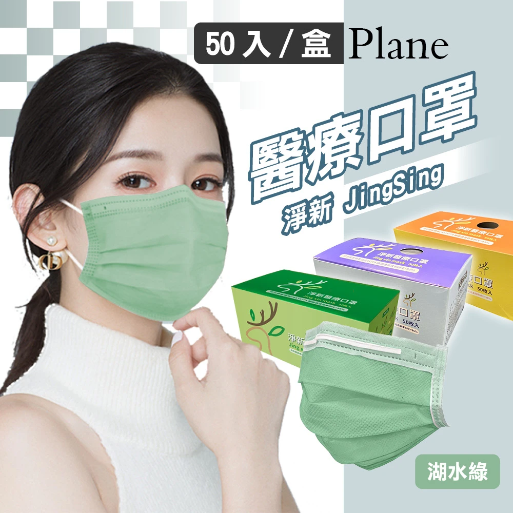 淨新 雙鋼印醫療級口罩-湖水綠(成人50入/一盒/國家隊 防飛沫/灰塵)