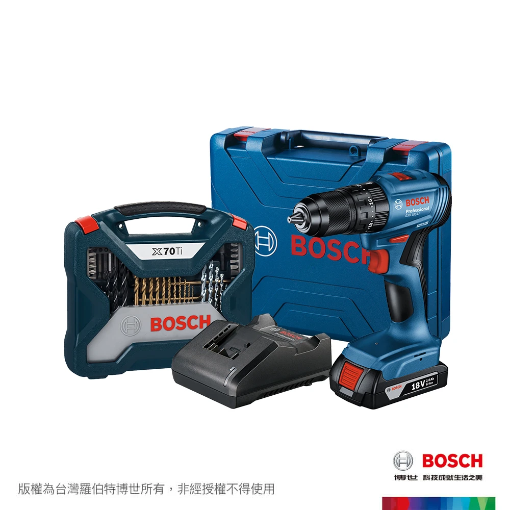 BOSCH 博世 18V 鋰電免碳刷震動電鑽/起子機配件套裝(GSB 185-LI+X-line 70 TiN)