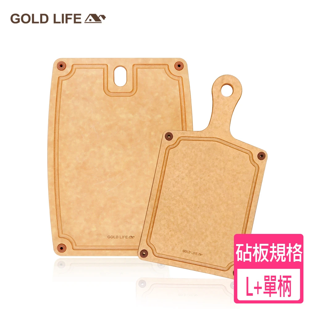 GOLD LIFE 買大送小 高密度不吸水木纖維砧板L+單柄砧板
