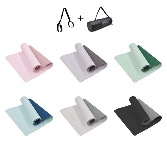 KingKong買1送2 加厚8mm 雙色體位線環保TPE瑜珈墊 靜音健身墊(贈背帶+透氣網袋)