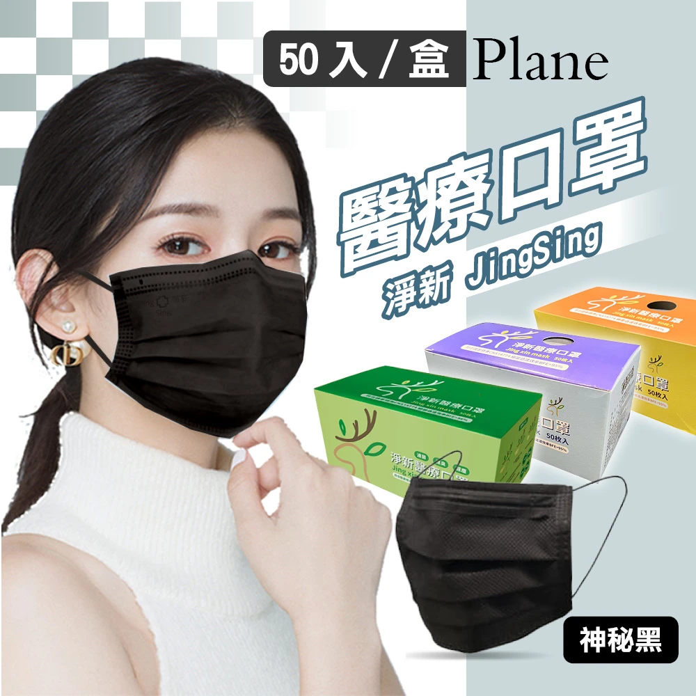 淨新 雙鋼印醫療級口罩-神秘黑(成人50入/一盒/國家隊 防飛沫/灰塵)