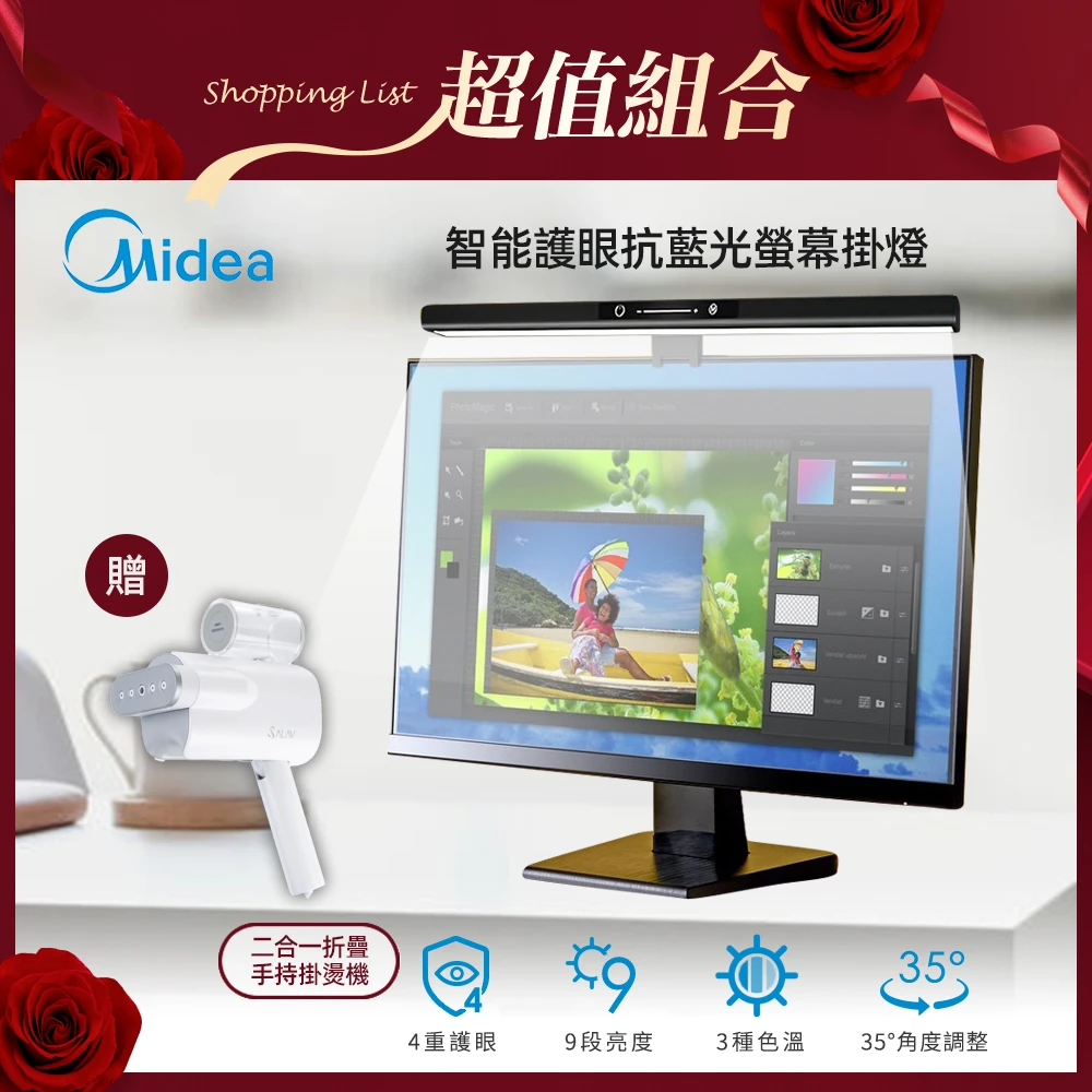 MIDEA 美的 智能護眼螢幕掛燈(MD-4.5TW)+【SALAV】二合一折疊手持掛燙機(HS-06)