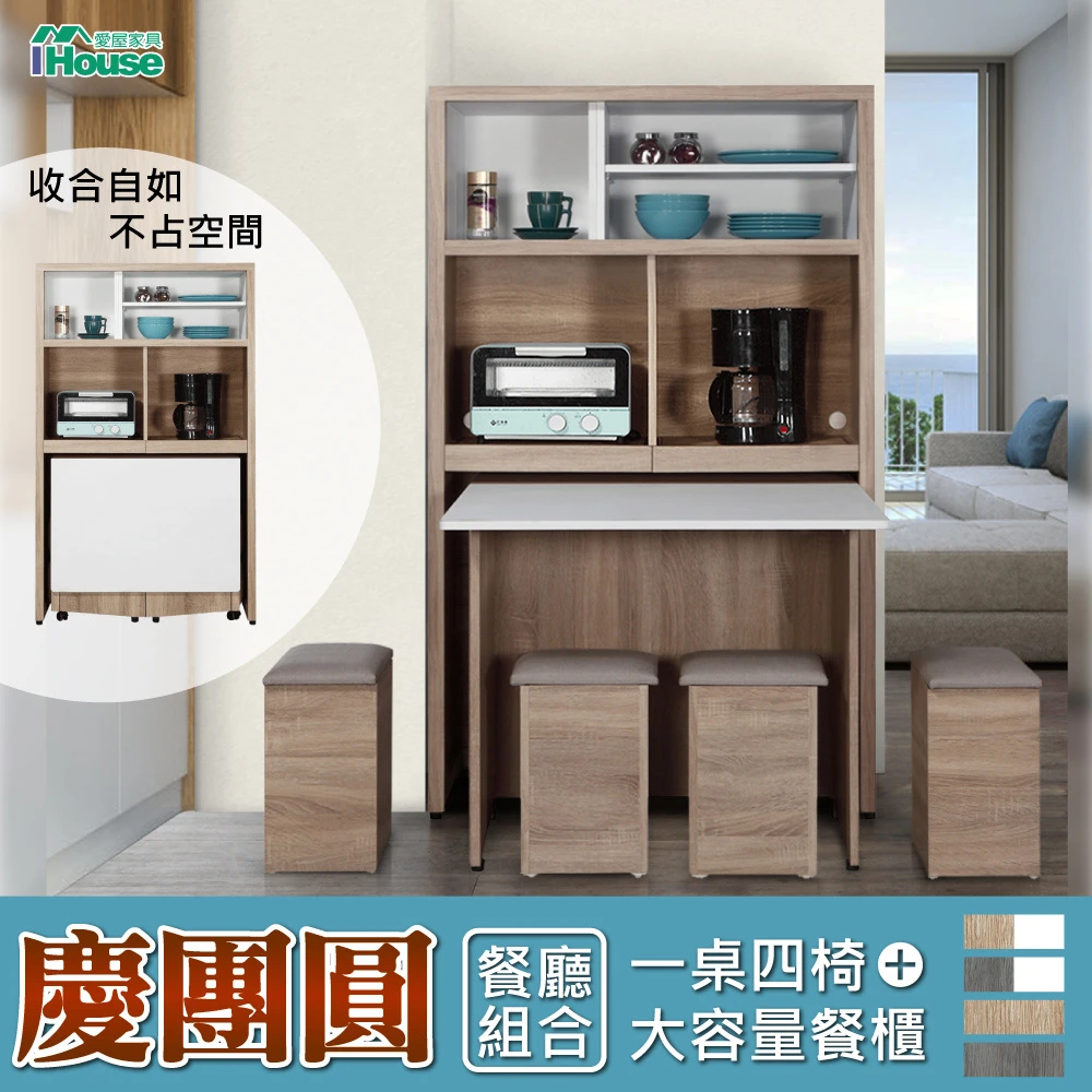 IHouse 慶團圓 MIT木芯板1桌4椅+大容量餐櫃 電器櫃(餐廳組合)