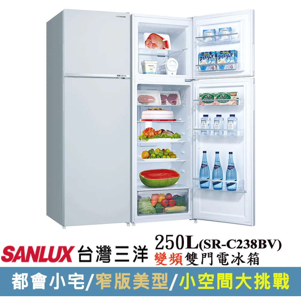 【SANLUX 台灣三洋】250公升一級能效變頻雙門冰箱(SR-C238BV)【SANLUX 台灣三洋】250公升一級能效變頻雙門冰箱(SR-C238BV)