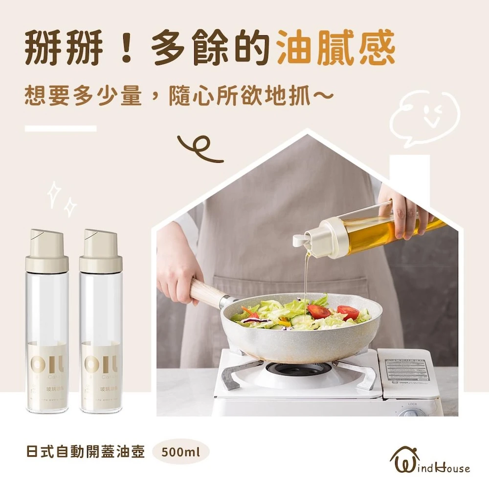 WindHouse 北歐小舖 日式自動開合油壺-500ml(醬油瓶/醋瓶/油瓶/米酒)