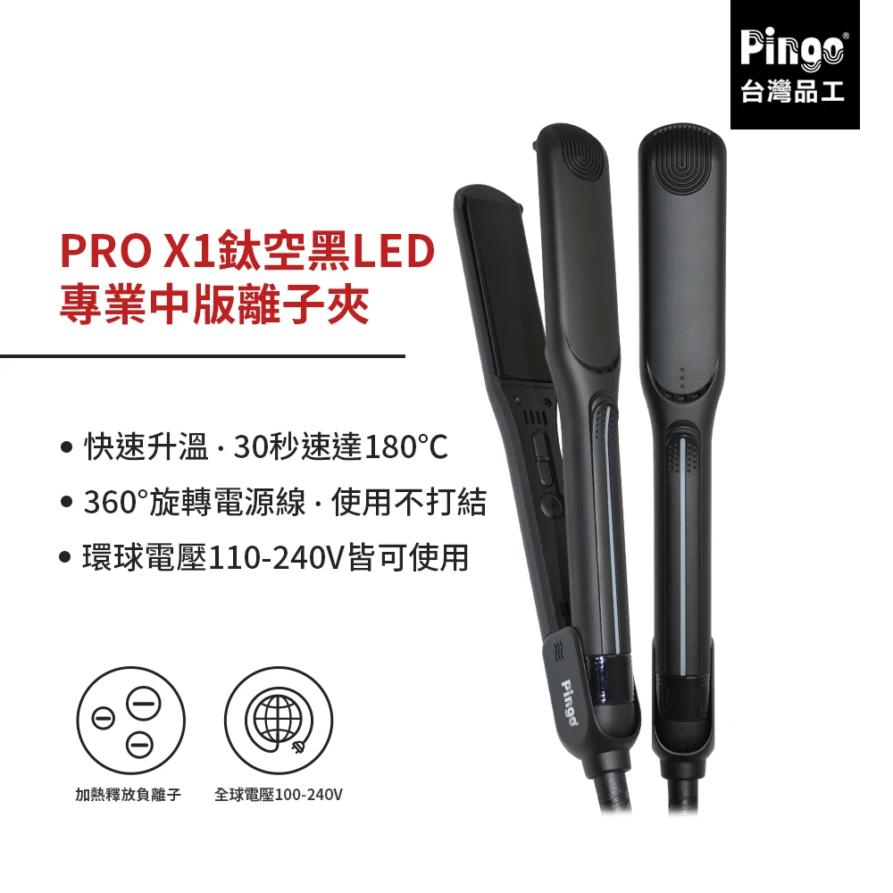【Pingo 台灣品工】PRO X1鈦空黑LED專業中版離子夾(平板夾/直髮夾)【Pingo 台灣品工】PRO X1鈦空黑LED專業中版離子夾(平板夾/直髮夾)【Pingo 台灣品工】PRO X1鈦空黑LED專業中版離子夾(平板夾/直髮夾)