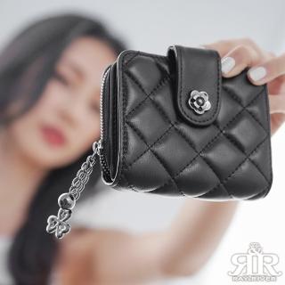 2R 手工真皮 綿霜羊皮 Kerry 菱格風琴卡片短夾 經典黑(皮夾)