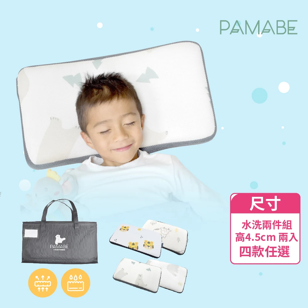 PAMABE 4D兒童水洗透氣枕-水洗兩件組-4.5cm(防蹣抗菌/午睡枕/保母托育枕/兒童枕/小童枕)