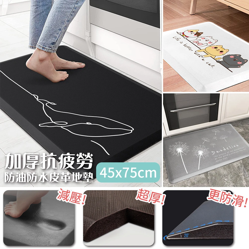 半島良品 12MM科技氣墊/防油防水減壓皮革廚房地墊75x45cm(多款選 台灣環保印刷 踩屎感地墊)