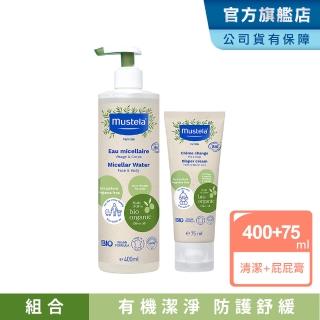 Mustela 慕之恬廊 有機護臀組(護膚膏75ml+潔膚水400ml 無香 歐盟ECOCERT+法國BIO認證)