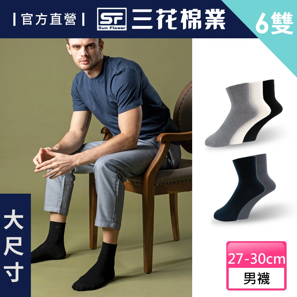 SunFlower 三花 6雙組加大襪無痕肌1/2休閒襪(適用襪.襪子.大尺碼襪)