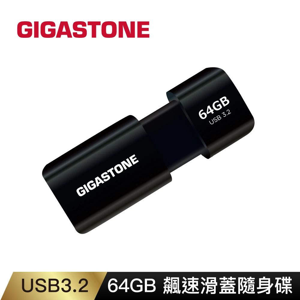 GIGASTONE 立達 64GB USB3.1/3.2 Gen 1 極簡滑蓋隨身碟 UD-3202黑(64G USB3.2高速隨身碟)