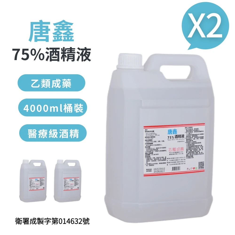唐鑫 75%酒精液 2桶組(4000ml /桶 防疫清潔)
