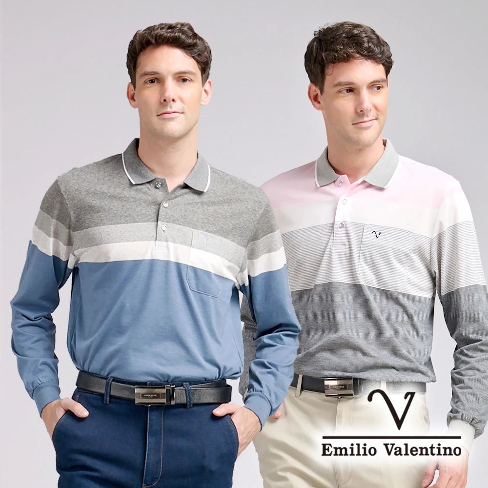 Emilio Valentino 范倫鐵諾 男 長袖POLO衫 棉質舒適透氣 口袋 上衣 polo 薄款 台灣製(多款選)