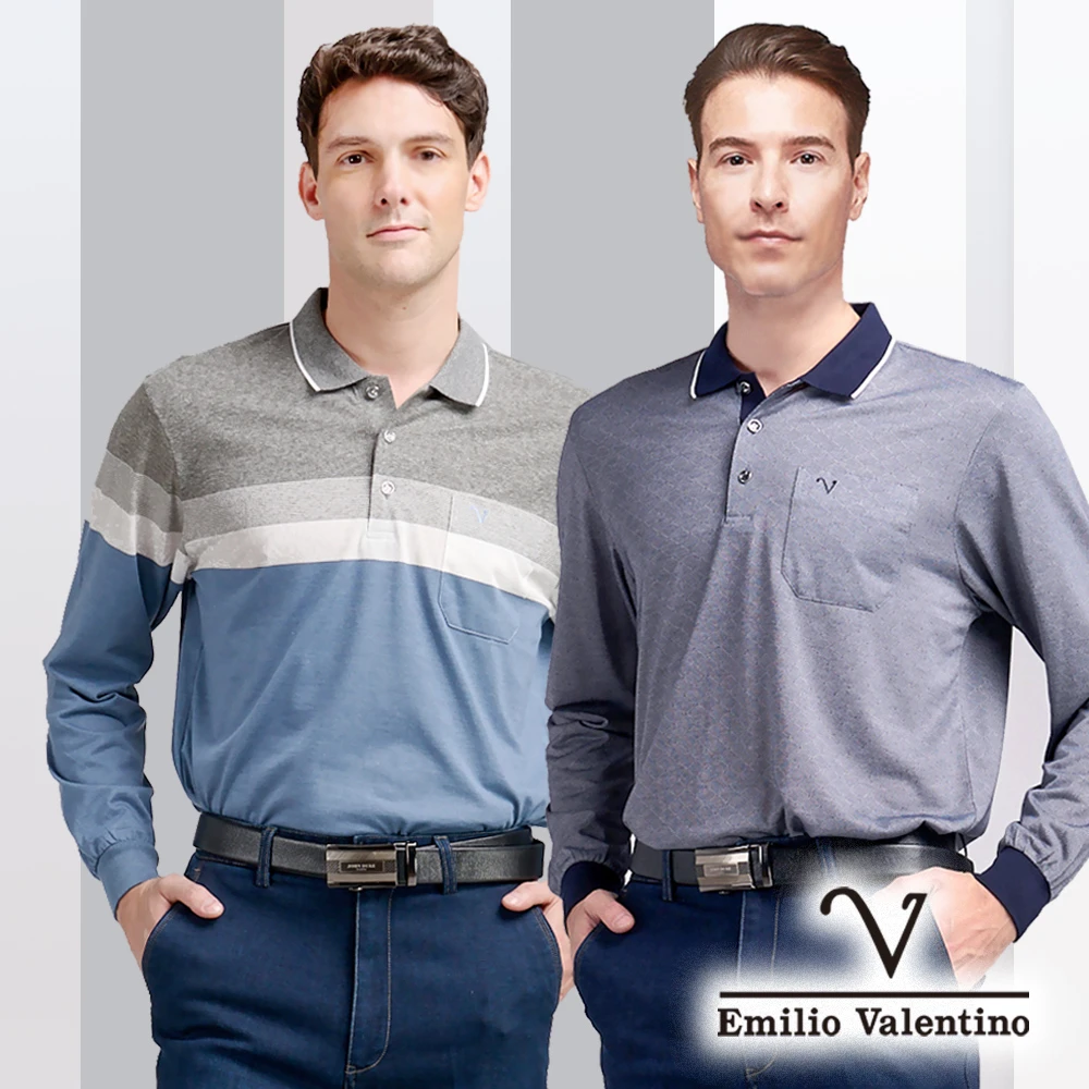 Emilio Valentino 范倫鐵諾 男 長袖POLO衫 棉質舒適透氣 口袋 上衣 polo 薄款 台灣製(多款選)