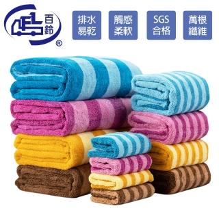 百鈴 Aqua五星級厚絨快乾舒適吸水巾12件組(毛巾/浴巾/方巾/擦頭巾/包頭巾)