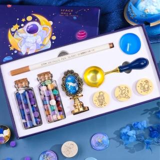 炫麗造型 太空人火漆封蠟印章禮盒套組9件套(文具 印章 造型 蠟燭 蠟粒 封蠟章 手帳 喜帖 交換禮物)