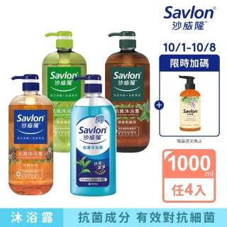 Savlon 沙威隆 抗菌沐浴露系列 任選1000mlx 4入組-松木/馬鞭草/茶樹/綠茶(沐浴露/身體清潔/官方直營)