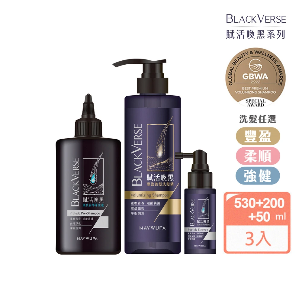 美吾髮 BlackVerse賦活喚黑淨洗養3步驟(淨化液200ml+洗髮精530ml+養髮液50ml)