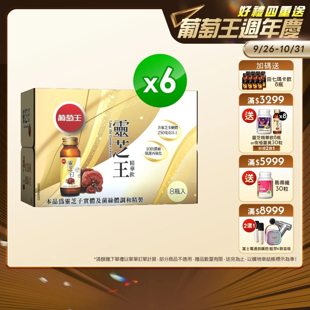 葡萄王 靈芝王精華飲60mlx8瓶x6盒 共48瓶(靈芝多醣體 靈芝子實體萃取物 葡萄王官方)