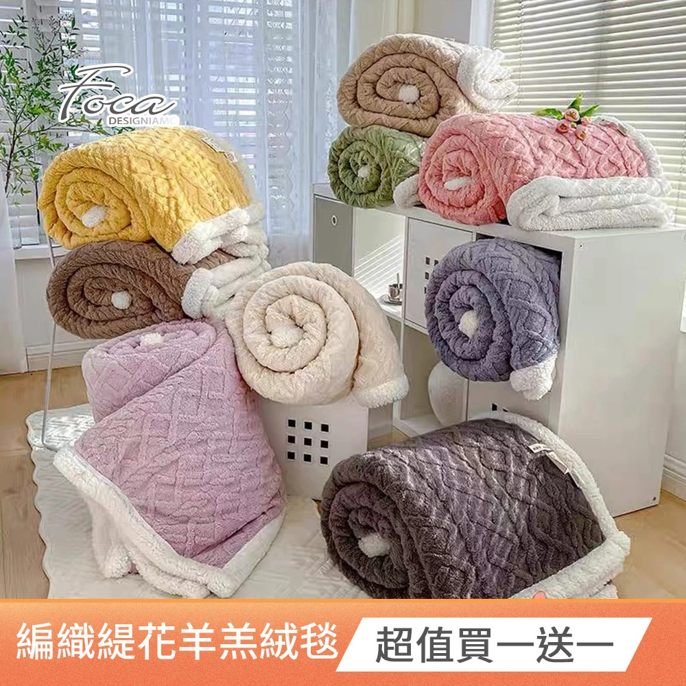 FOCA 超值買一送一 加厚升級 立體編織緹花保暖沐綿絨羊羔絨雙面毯(150X200cm)