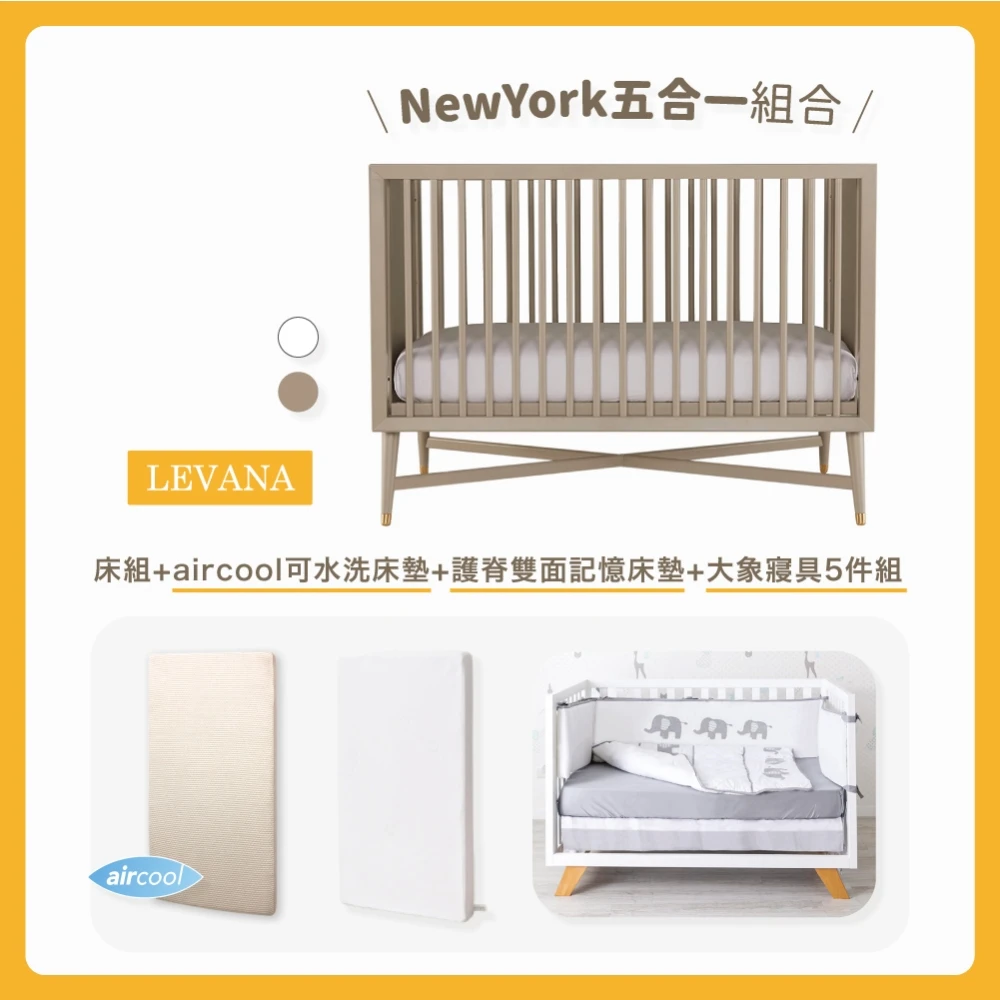 LEVANA New York 紐約五合一+護脊雙面緩壓記憶床墊+有機棉可水洗床墊+大象五件組+送床包(限定組合)