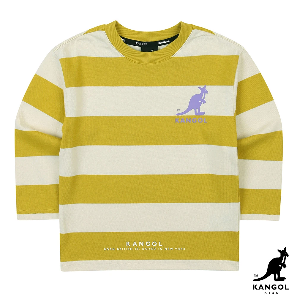 KANGOL 韓國-KIDS 寬條紋長袖T恤-白底橄欖綠條(W22AN007KH)